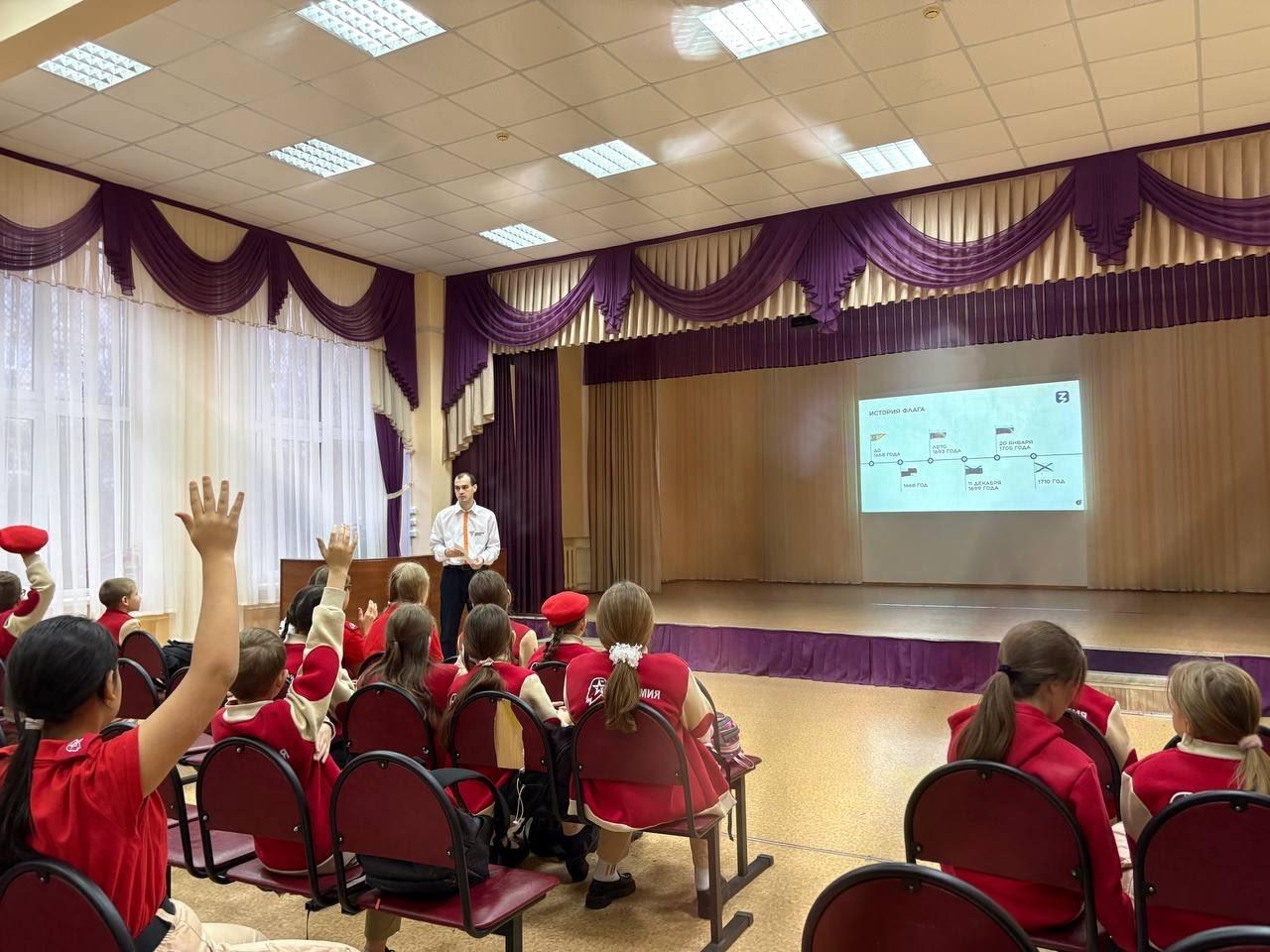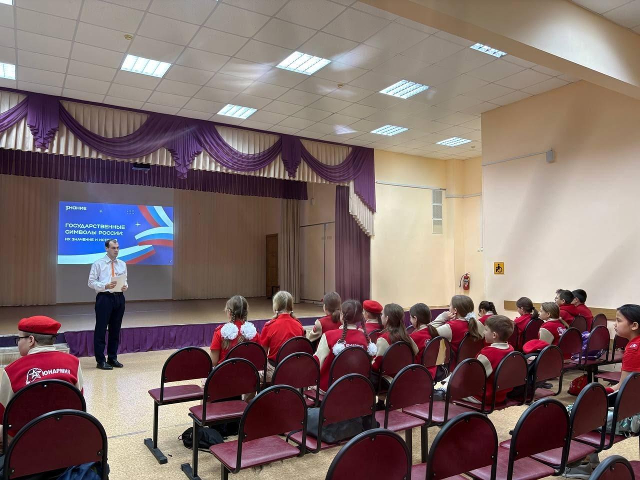 В день Государственного герба России, советник директора по воспитанию Горохов Е.Р. провел лекцию на тему «Государственные символы России: их значение и история» для учащихся 5 «Б» класса