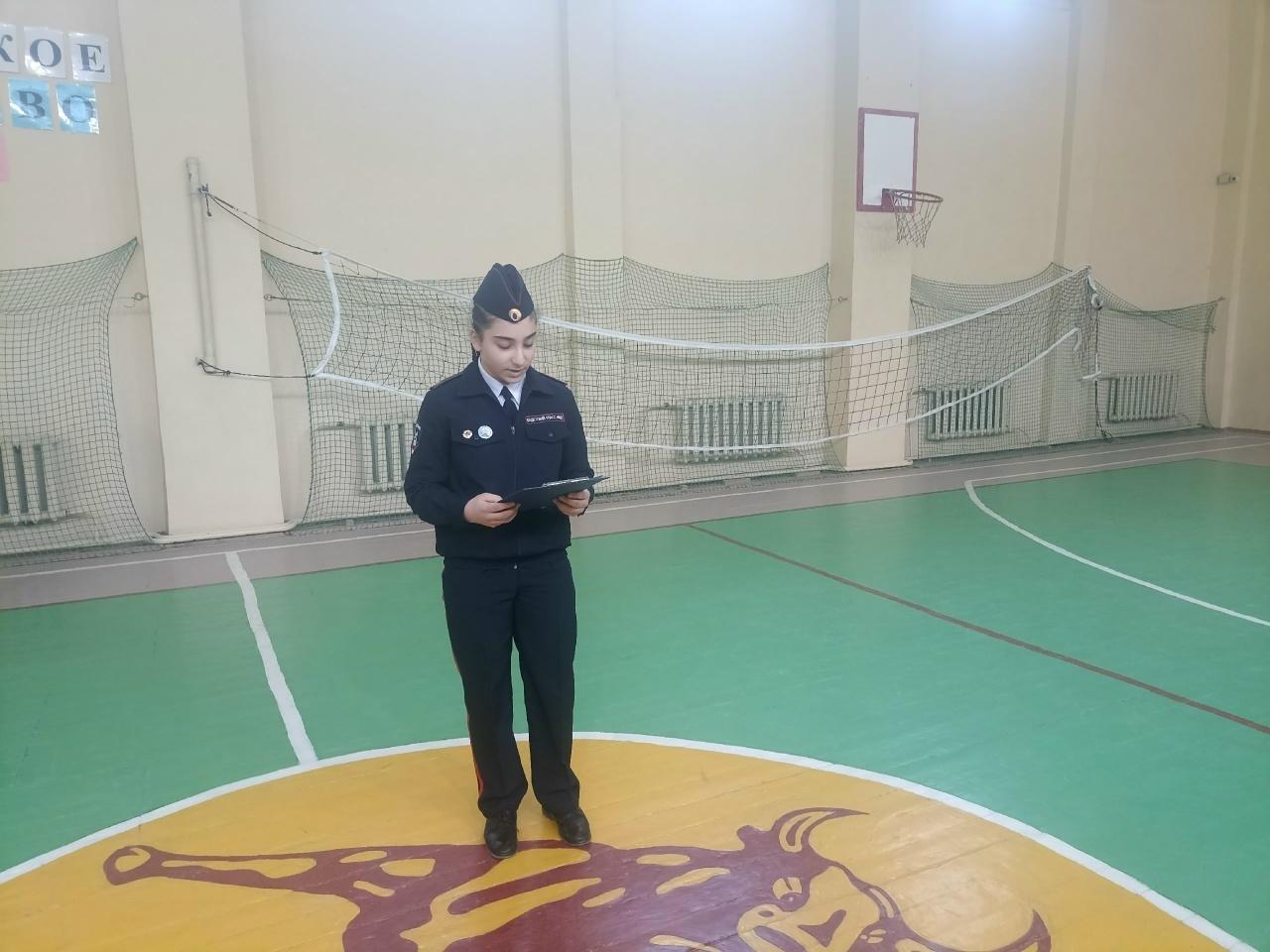 Почетное право поднять флаг РФ предоставился командиру дежурного класса Дорожкиной Милане победителям школьного этапа фестиваля "Волшебная рампа" в номинации "Театрализованное представление".