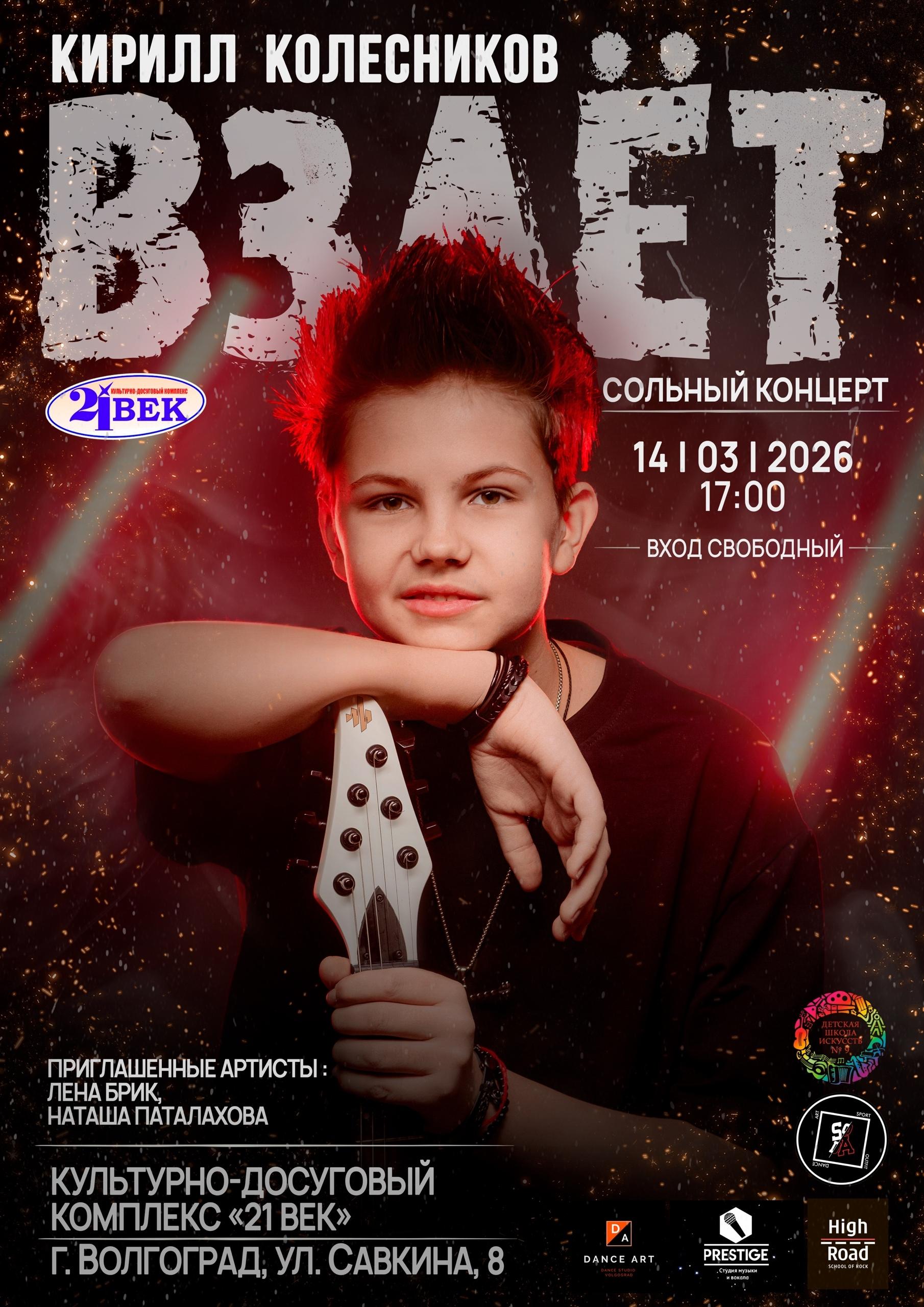 14 марта 2026 в 17:00 в культурно-досуговом комплексе «21 век» г. Волгоград, ул. Савкина, 8.