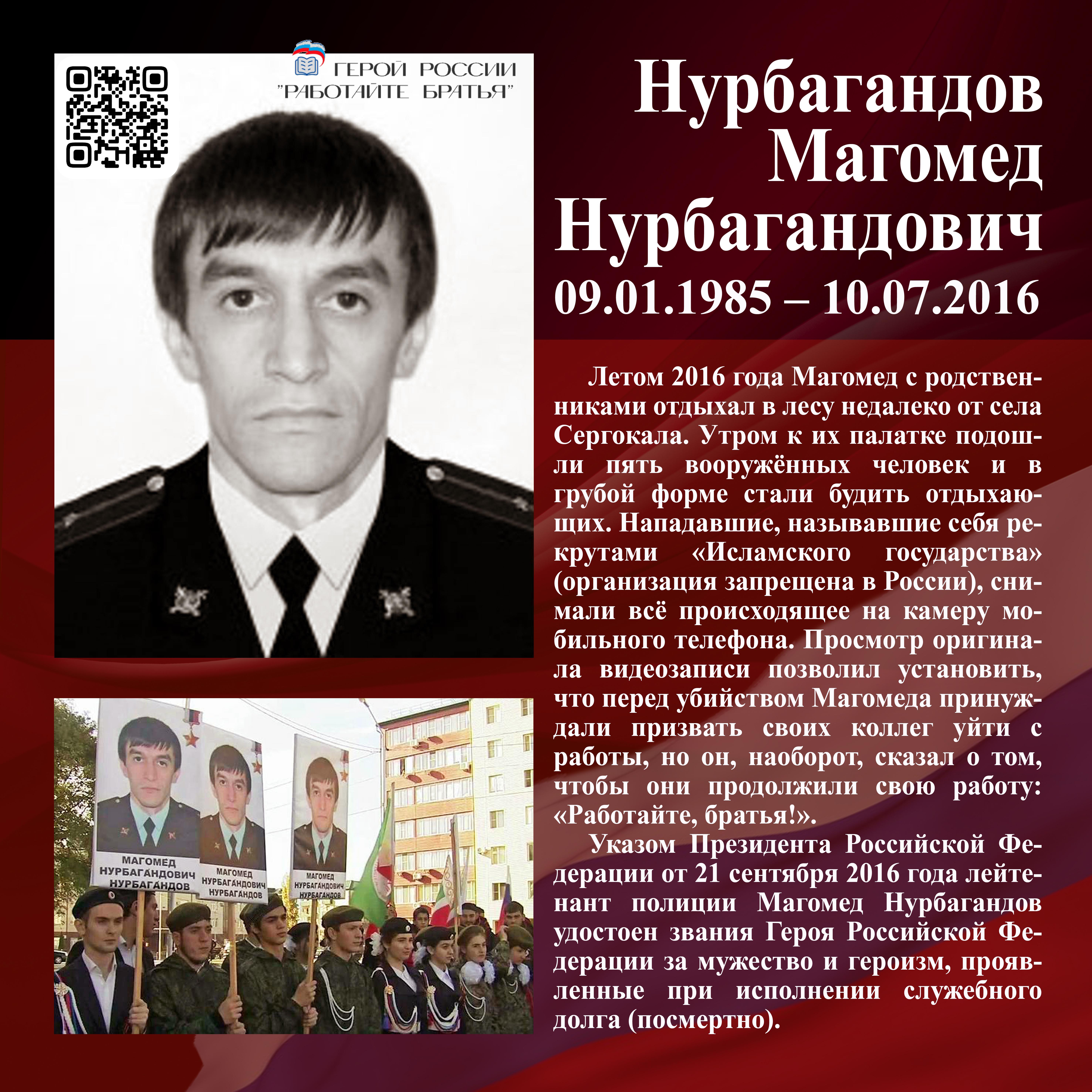 МОУ СШ №128 также стала участником проекта "Лица Героев". С 22.09.2022 на территории МОУ СШ №128 установлены мемориальный стенды с портретами Героев. Один из стендов посвящен Нурбагандову М.Н. А 12.12.2024 в школе открыт мурал, посвященный выпускникам школы, погибшим при выполнении боевых задач в зоне СВО.